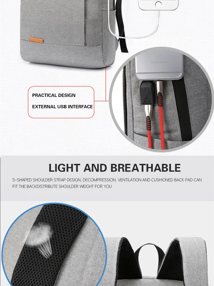 1 Pack 15.6 Inch Men's Business Simple Computer Backpack Usb Charging Lightweight Schoolbag Travel Commuting