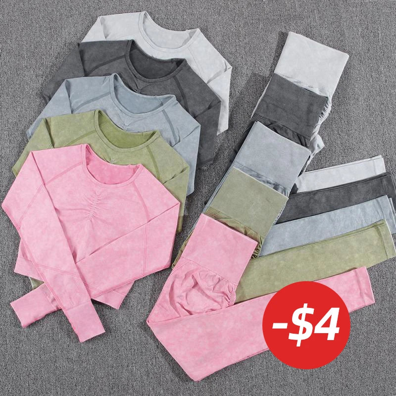 NORMOV 2Pcs Gym Women Sets Seamless Yoga Set High Waist Gym Sportwear Push Up Sport Workout Sets Fitness Long Sleeve Gym Suit